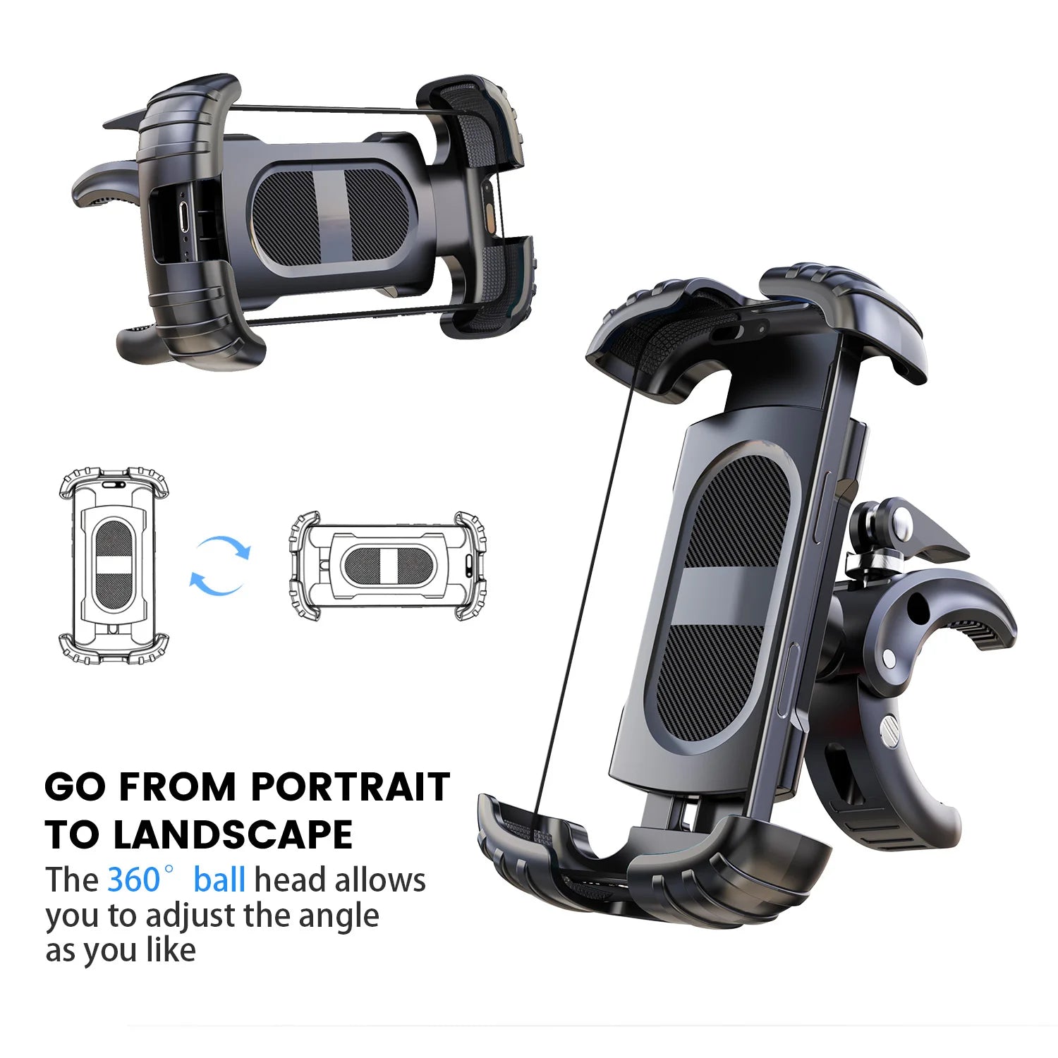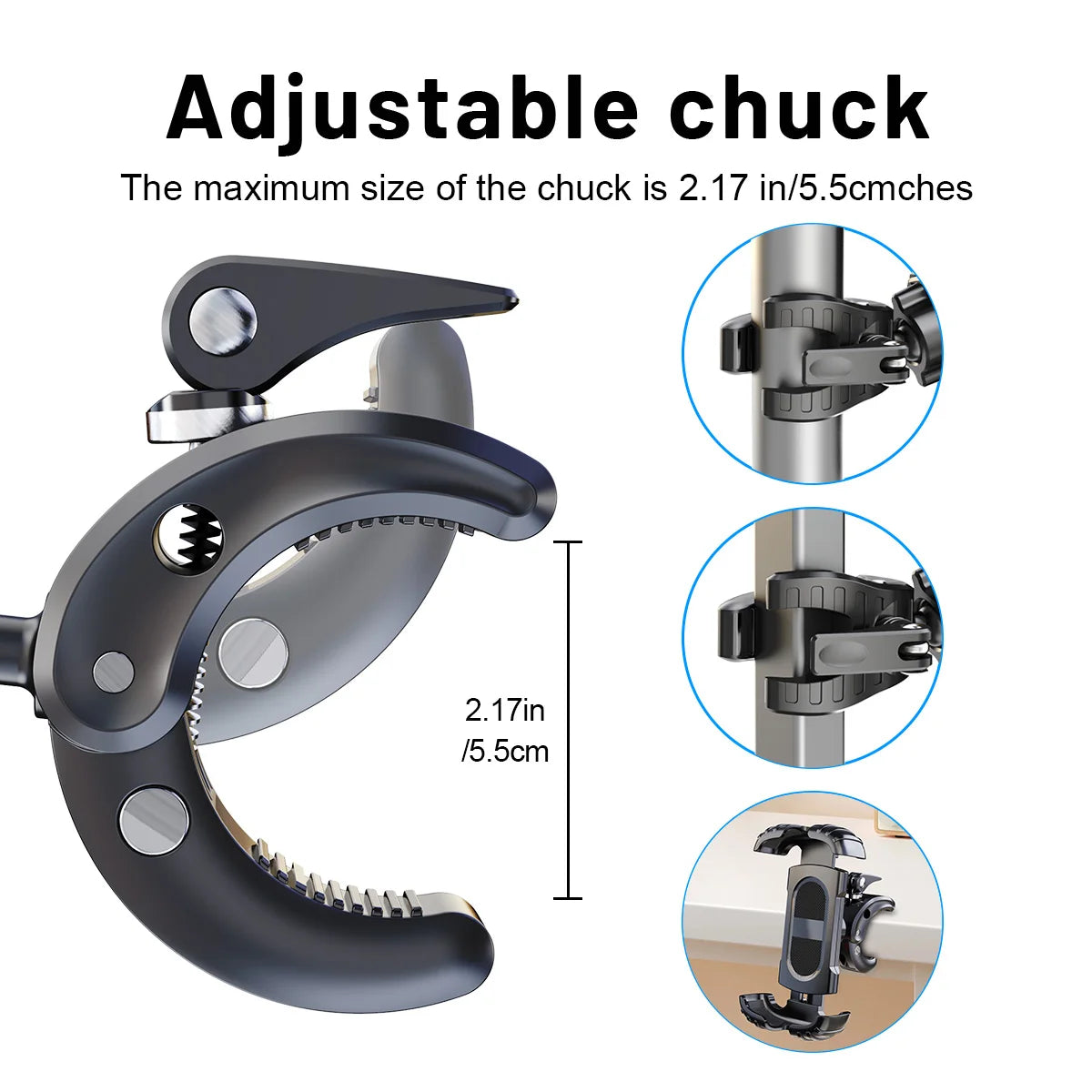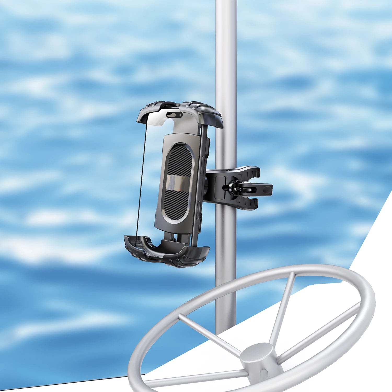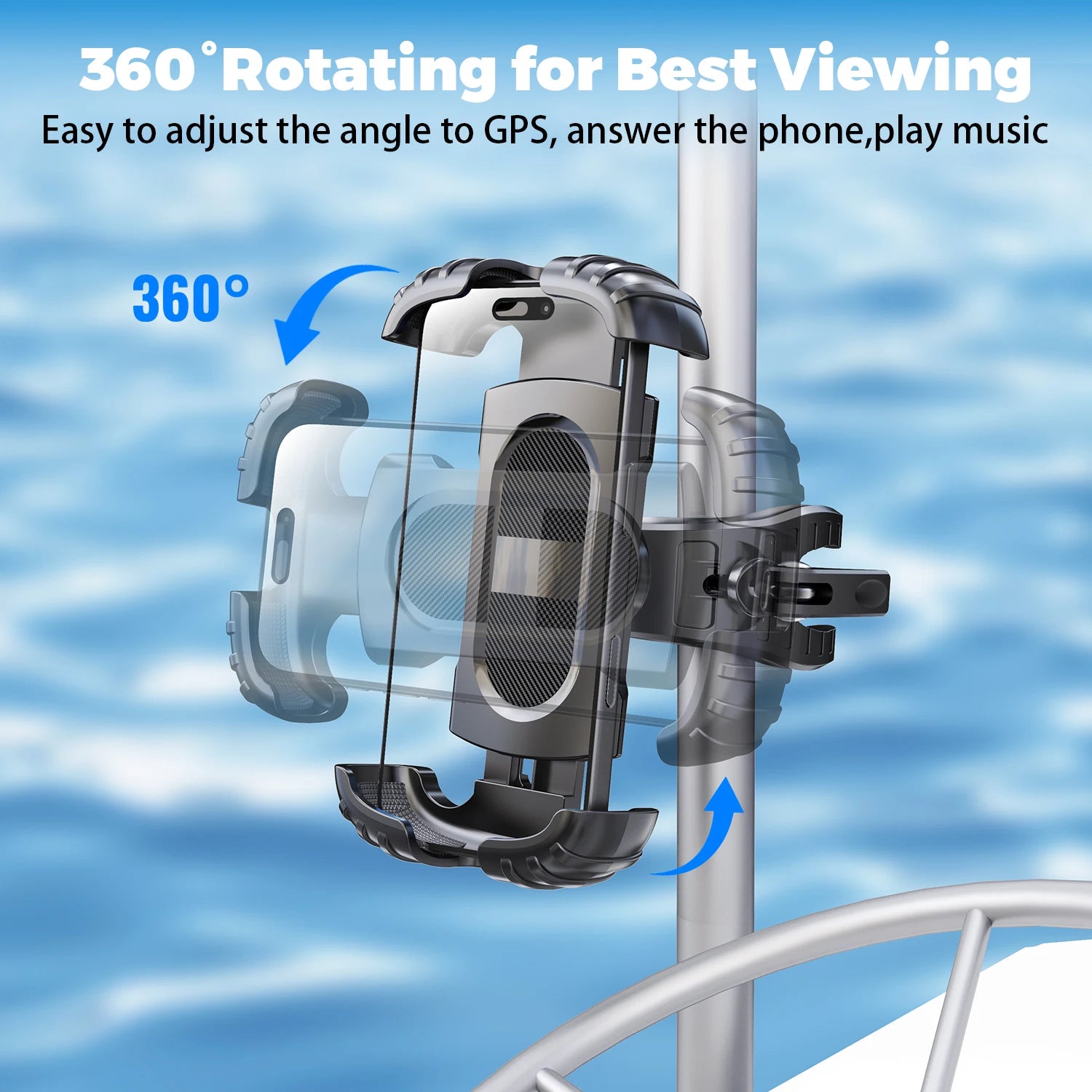 LRBH Marine Phone Mount, Crocodile Clip Arm Boat Holder, Quick Lock 360° Rotation, Shockproof Scratch-Free, Fits 4.7-7.2" Phones